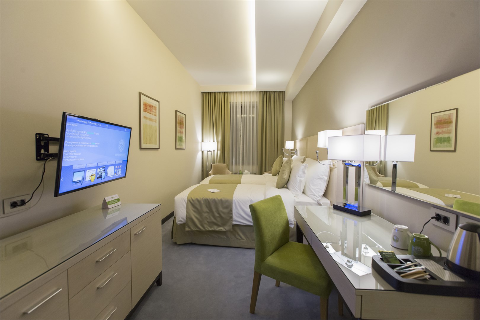 Все номера оснащены телевизором с плоским экраном и спутниковыми каналами, а в некоторых из них обустроена гостиная зона. Собственная ванная комната с биде укомплектована банными халатами и тапочками. В ресторане Ararat подают блюда европейской кухни, а в баре можно заказать напитки.